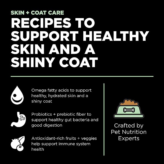 While GO! SOLUTIONS Skin + Coat Care can be useful for many dogs, individual outcomes may vary. If your dog has unique nutritional demands or health issues, please contact with a veterinarian before making any dietary modifications.